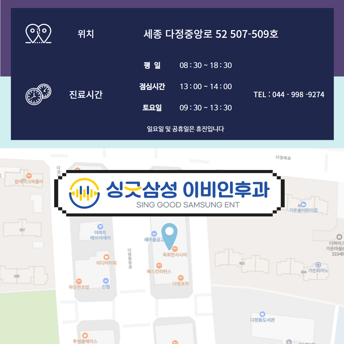 세종 다정중앙로 52 507-509호 싱긋삼성이비인후과